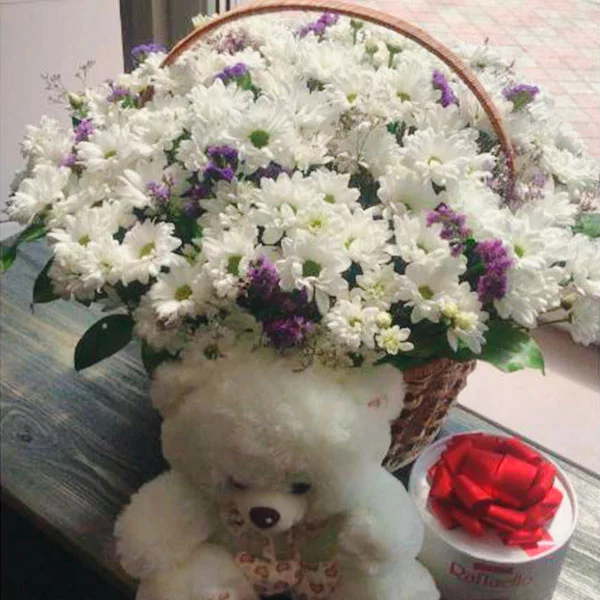 Корзинка отличная! Как будто ромашек охапка! Цветы свежие и доставлено все быстро!спасибо!!!