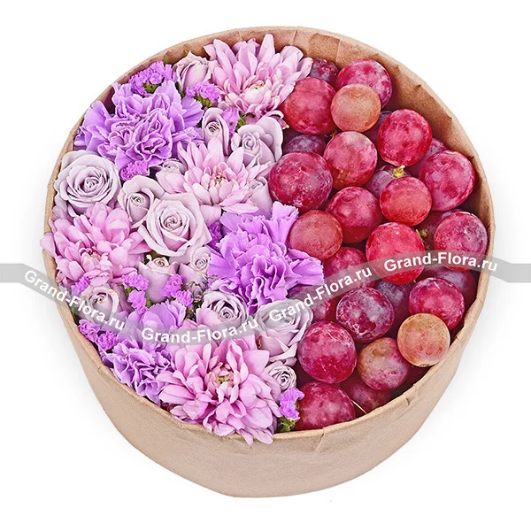 Вкус винограда - коробка с хризантемами и виноградом
