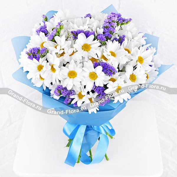 Хотела заказать ромашки, но ни в одном магазине их не было - сказали не сезон и ничего мне не предложили..., а вот Гранд Флора предложила отличный вариант с ромашковидной хризантемой на замену . Я очень довольна что доверилась вашей рекомендации! Букет прекрасный!